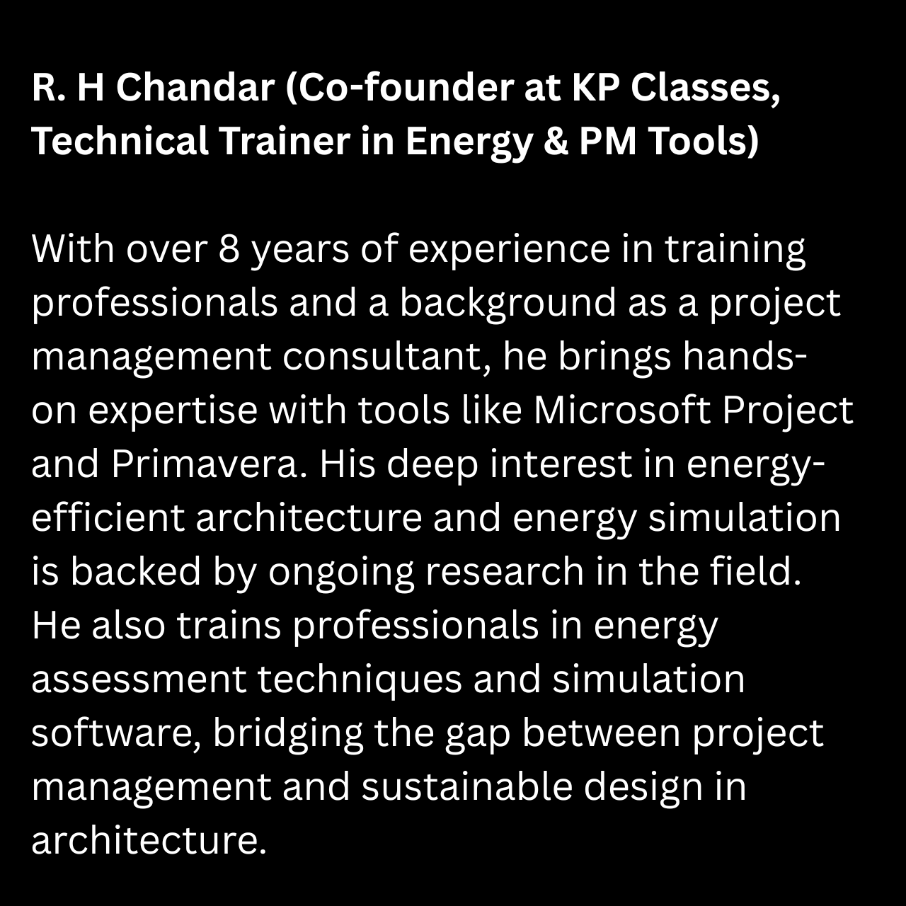 Learn to interpret energy flow, thermal comfort parameters, and building envelope performance. This session introduces simulation-based workflows and basics of relevant software tools to analyse and optimise building energy consumption across design stages.